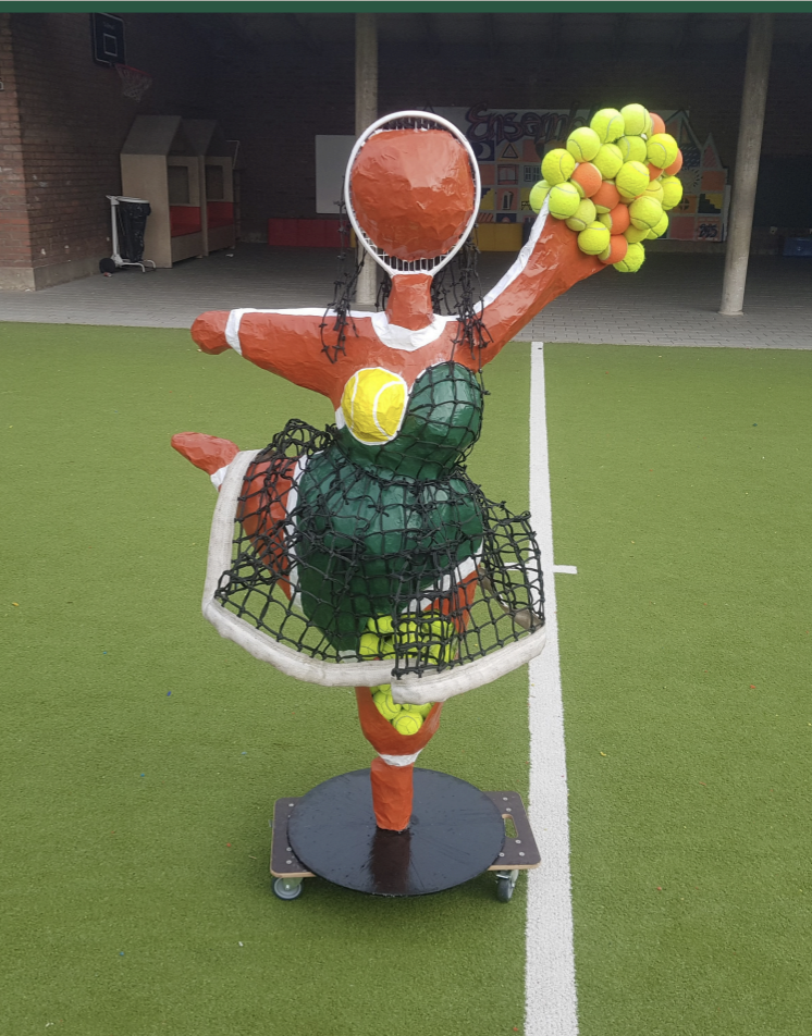 Les classes de petites sections et grandes sections se sont inspirées d’une visite au musée LAAC de Dunkerque, où ils ont découvert la nana de Nikki de Saint Phalle. Ils ont alors réalisé leur propre nana grâce à du matériel donné par le club de tennis de Coudekerque-Branche.