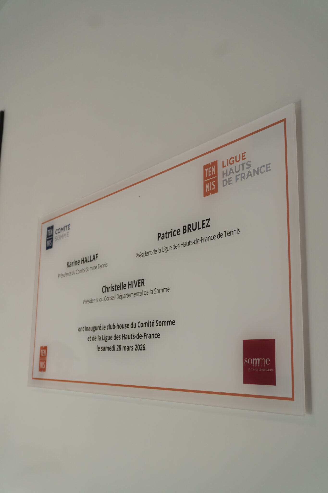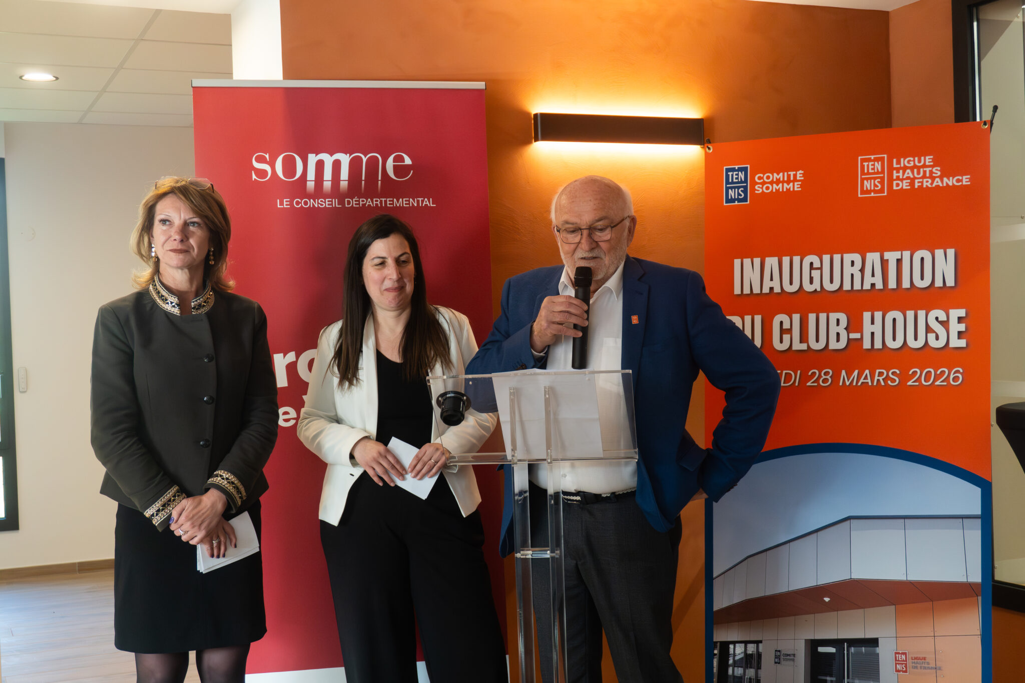 Le samedi 28 mars 2026, le centre de Ligue d’Amiens a inauguré son nouveau club house, en présence de plusieurs représentants institutionnels : Patrice Brulez, président de la Ligue des Hauts-de-France de Tennis, Karine Hallaf, présidente du comité Somme de tennis, Christelle Hiver, présidente du Conseil départemental de la Somme.